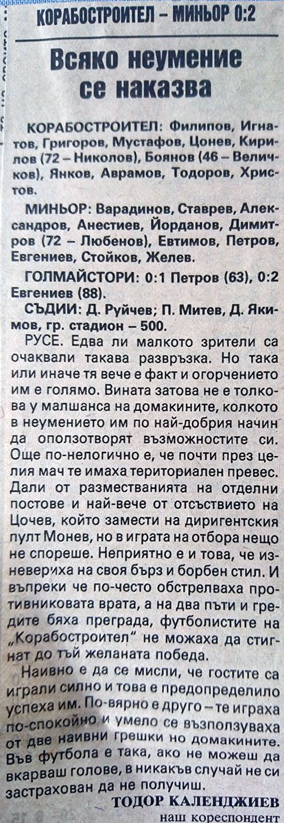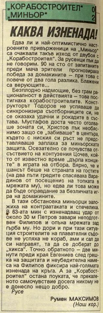 | 24 октомври 1992 | 15:00 | "Б" група | 1992/93 | XV | 500 зрители |