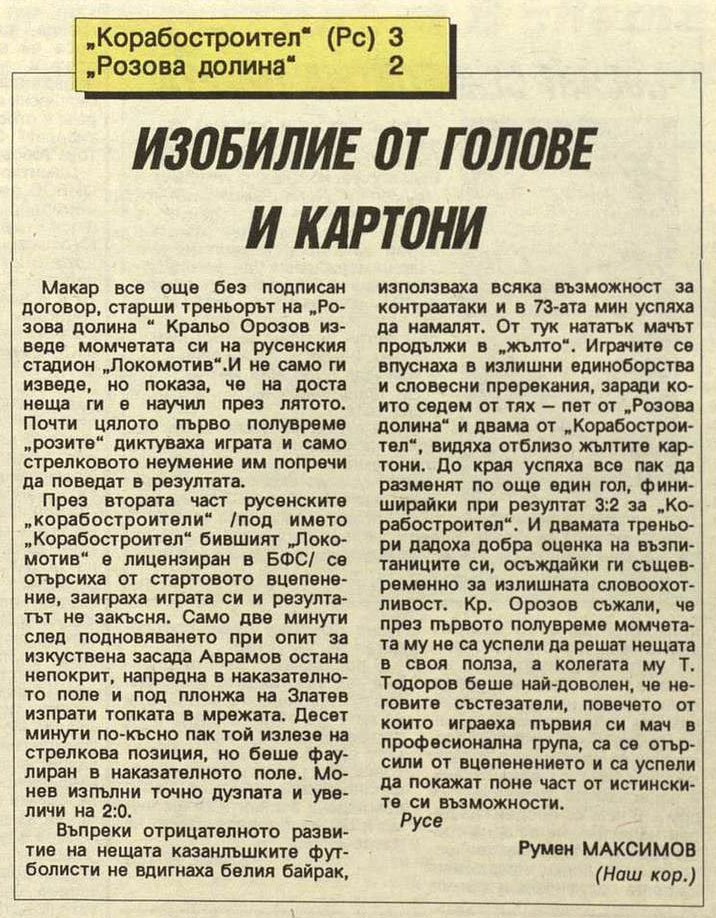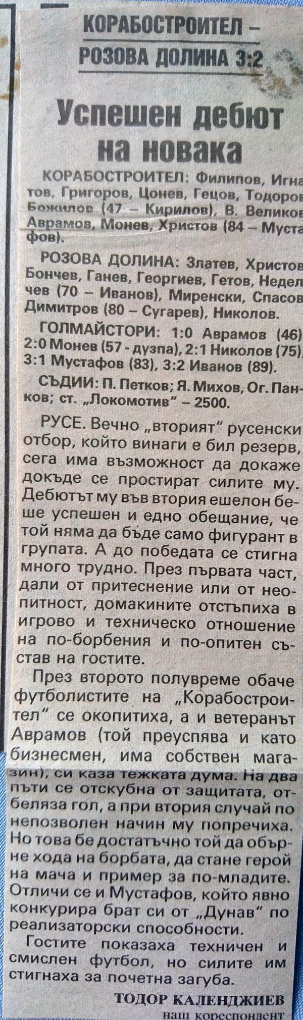 | 8 август 1992 | 18:00 | "Б" група | 1992/93 | I | 2 500 зрители |