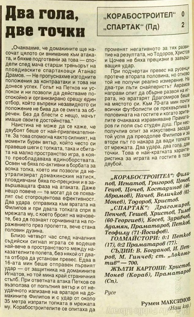 | 27 март 1993 | 15:30 | "Б" група | 1992/93 | XXV |