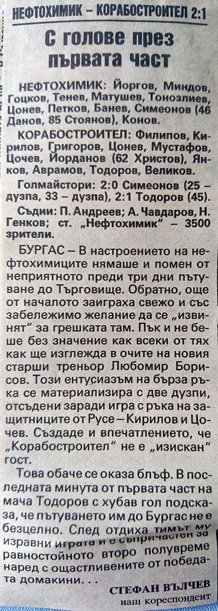 | 23 септември 1992 | 17:00 | "Б" група | 1992/93 | X | 3 500 зрители |